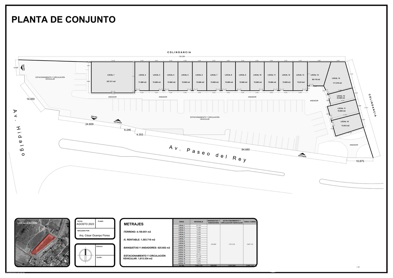 Disponibilidad de locales comerciales en Serví Plaza, ubicados estratégicamente sobre la Avenida Paseo del Rey, una zona de alta afluencia peatonal y vehicular en el Estado de México. El desarrollo cuenta con espacios modulares que van desde los 53 m² hasta plantas de 1,500 m², adaptables a diversos giros como farmacias, tiendas de conveniencia o servicios. La plaza ofrece amplio estacionamiento para clientes, uso de suelo comercial, alturas de hasta 3.90 metros y una infraestructura moderna diseñada para el crecimiento de marcas regionales y nacionales.